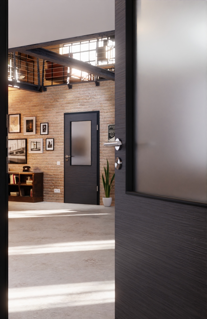 Trwałe drzwi wewnętrzne mają powierzchnię z Durat i rdzeń z pełnego wióru: