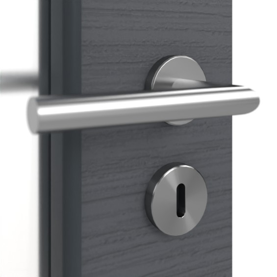 W górnej części skrzydła drzwi znajduje się prostokątny otwór szklany, który zapewnia piękne doświetlenie. Na dekorze Versio w antracycie widoczna jest wyczuwalna struktura, która tworzy wyjątkowe momenty światła i cienia. Powierzchnia w jakości Durat jest szczególnie odporna na uderzenia i ścieranie oraz łatwa w pielęgnacji.