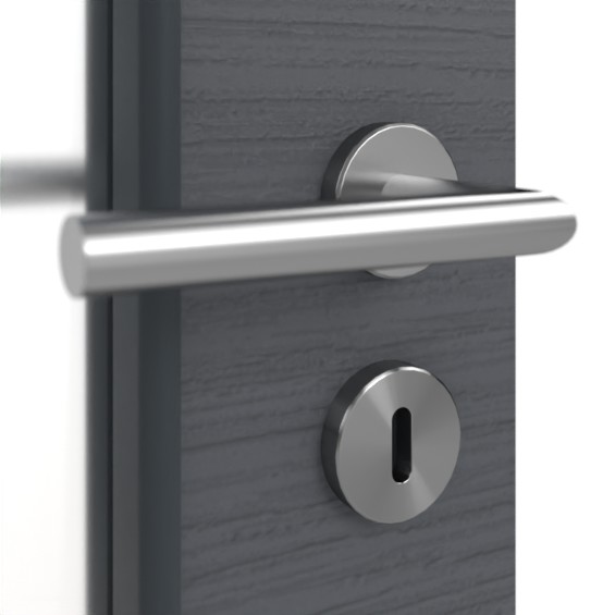 Dla korytarza bez okien duże przeszklenie z nałożonymi listwami szklanymi jest korzystne. Model ten dostarcza również dużo światła do innych pomieszczeń. Nowoczesny design dopełnia odporna powierzchnia Durat w wykonaniu Versio Struktur, która dzięki swojej reliefowej fakturze przypomina łupek. Spokojny odcień Anthrazit można łączyć z wieloma stylami wnętrz. Dodatkowo powierzchnia jest odporna na ścieranie i uderzenia oraz łatwa w pielęgnacji.