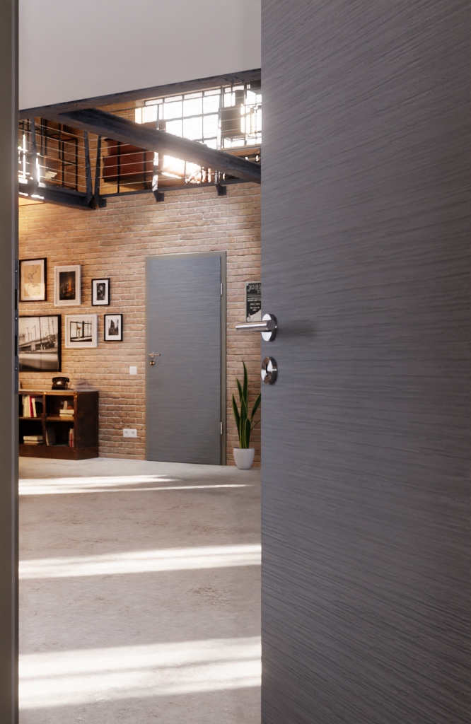 Nowoczesne drzwi wewnętrzne mają strukturalną powłokę z Versio-Durat i rdzeń z płyty wiórowej: