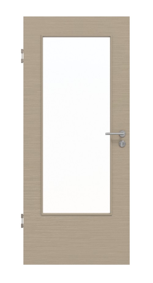 Dla korytarza bez okien duże przeszklenie z nałożonymi listwami szklanymi jest korzystne. Model ten dostarcza również dużo światła do innych pomieszczeń. Na dekorze Versio w Taupe widoczna jest wyczuwalna struktura, która zapewnia wyjątkowe momenty światła i cienia. Powierzchnia w jakości Durat jest szczególnie odporna na uderzenia i ścieranie oraz łatwa w pielęgnacji.