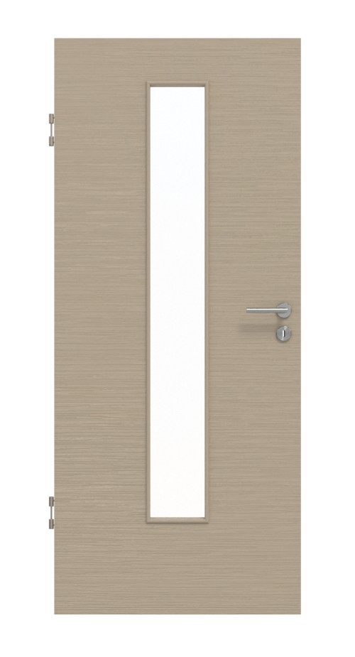 W centralnej części znajduje się wąskie okno świetlne wkomponowane w skrzydło drzwi, otoczone delikatnymi listwami szklanymi. Dzięki głęboko wytłoczonej strukturze powierzchnia Versio w taupe tworzy subtelne zabawy światła i cienia. Dodatkowo charakteryzuje się trwałą strukturą, jest odporna na uderzenia i ścieranie oraz łatwa w pielęgnacji.