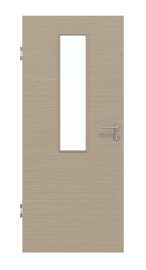 W górnej części skrzydła drzwi znajduje się krótkie okno ze szkła. Na dekorze Versio w taupe widoczna jest wyczuwalna struktura, która tworzy wyjątkowe efekty świetlne i cieniowe. Powierzchnia w jakości Durat jest szczególnie odporna na uderzenia i ścieranie oraz łatwa w pielęgnacji.
