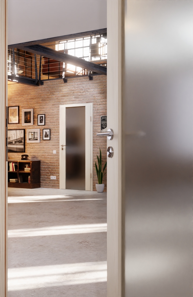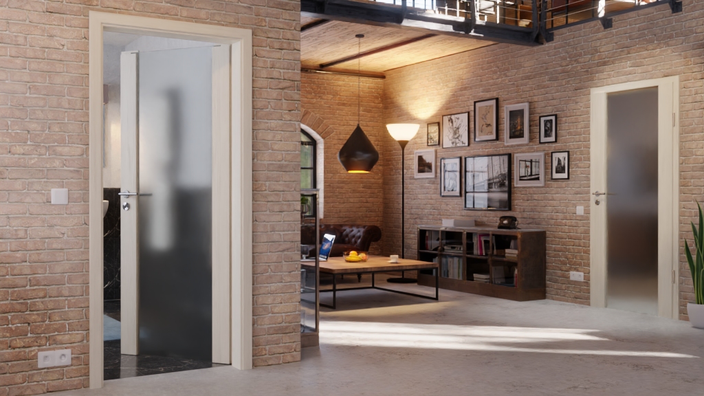 Elegancka wewnętrzna drzwi z dużym przeszkleniem i odporną powierzchnią Durat: