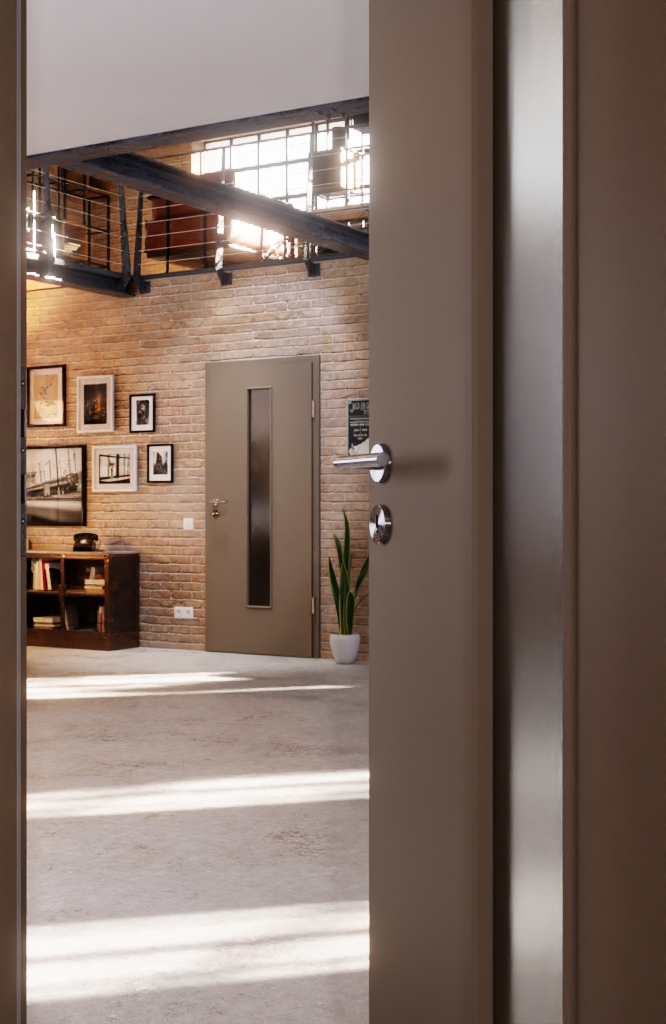 Atrakcyjna drzwi do wnętrz posiada wykończenie z matowego lakieru oraz rdzeń z pełnego wióru: