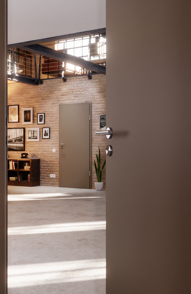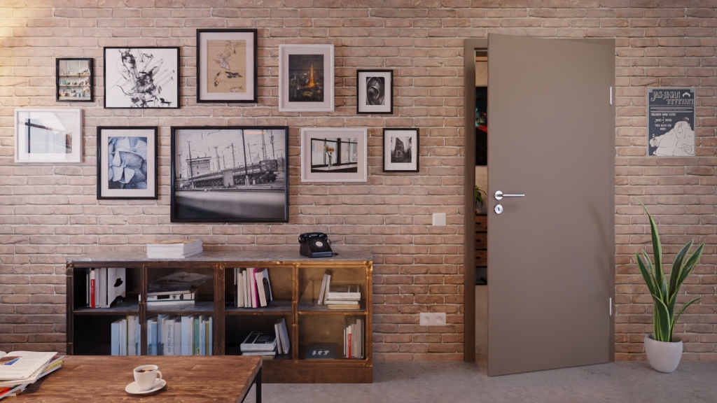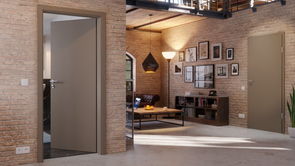 Atrakcyjna wewnętrzna drzwi ma powierzchnię z matowego lakieru i standardowo rdzeń z płyty wiórowej: