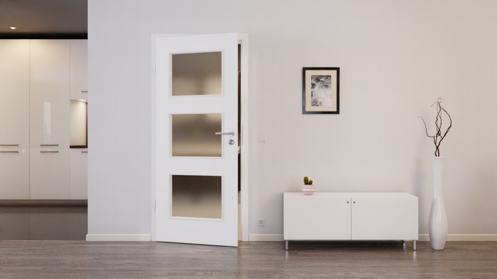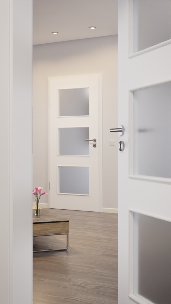 Robustne drzwi wewnętrzne mają dekor z Versio-Durat i rdzeń z pełnego wióru: