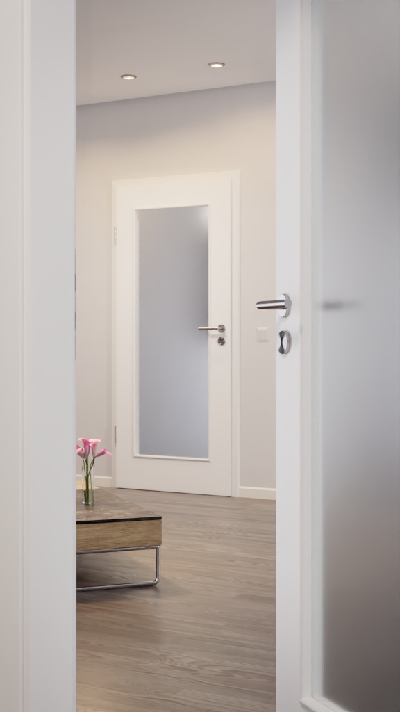 Stabilne drzwi wewnętrzne mają powierzchnię z Durat i rdzeń z pełnego wióru: