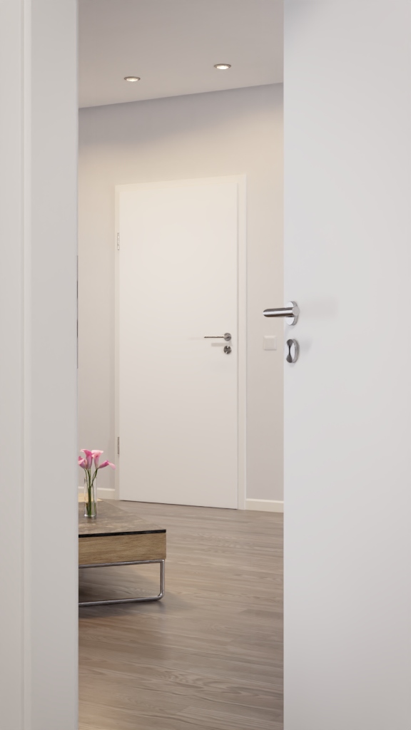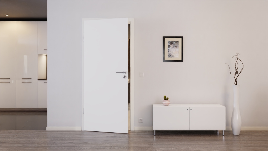 W niezawodnych drzwiach wewnętrznych znajduje się powierzchnia z ultramatowego Versio-Durat oraz rdzeń z płyty wiórowej: