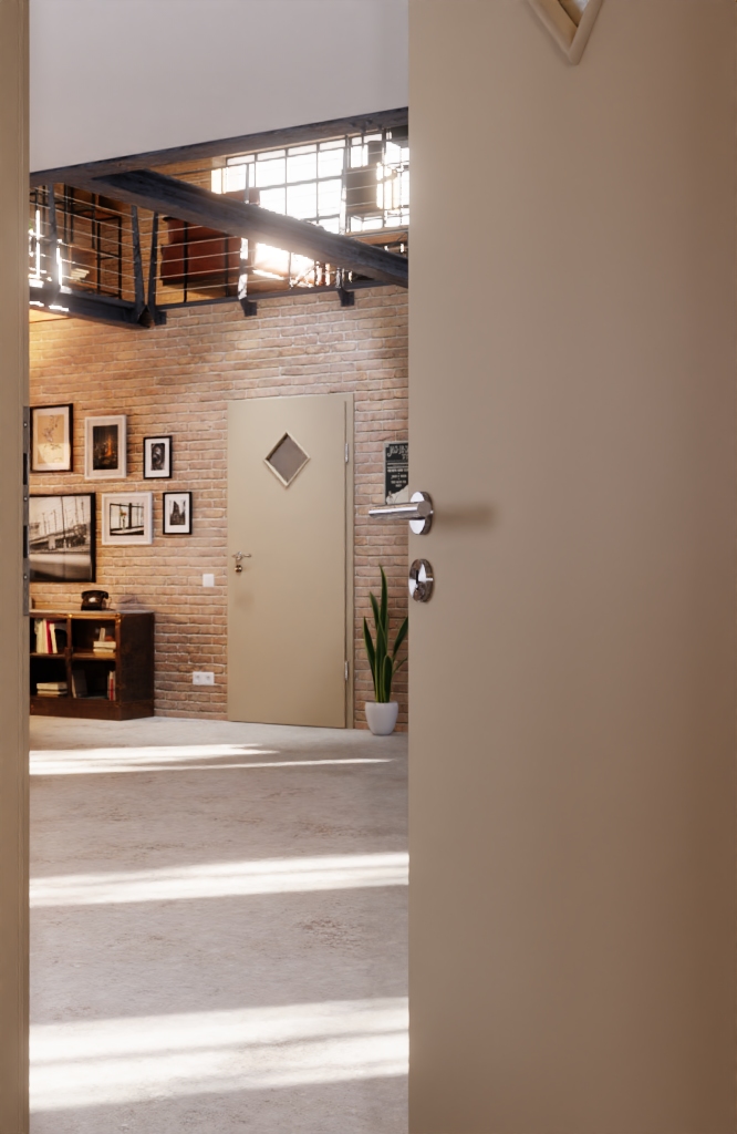 Wysokiej jakości drzwi wewnętrzne mają matowe wykończenie z Versio-Durat i rdzeń z pełnej płyty: