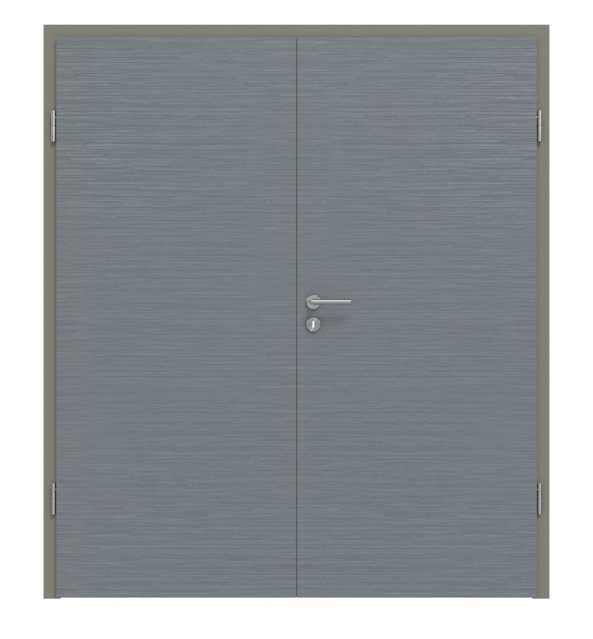 Nowoczesne drzwi podwójne z rdzeniem z płyty wiórowej i solidną okleiną Durat w strukturalnym odcieniu szarości Hygge:
