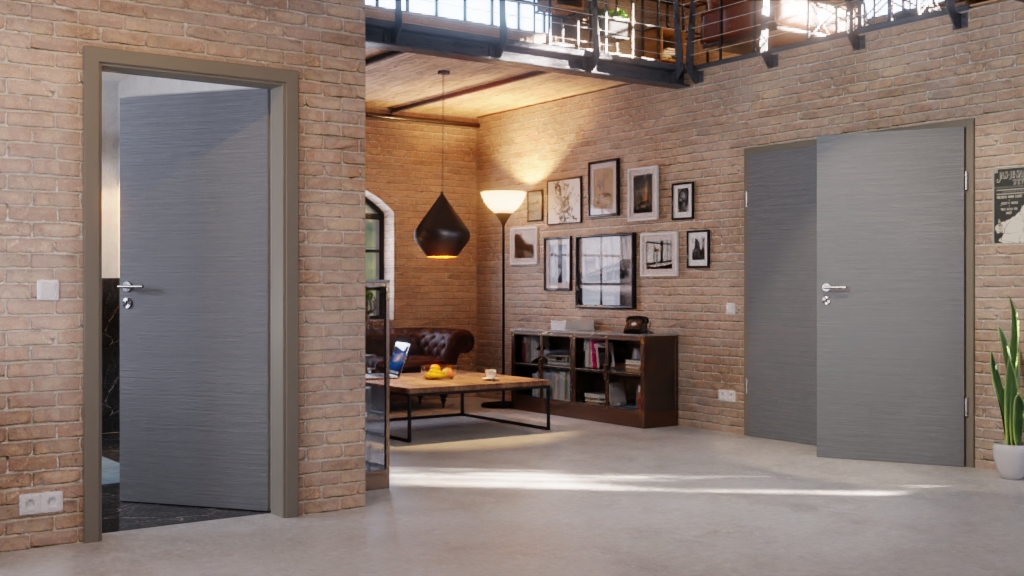 Stwórz wnętrze o wyjątkowym charakterze: Dzięki atrakcyjnej powierzchni Versio Strukturiert Hygge szary, drzwi podwójne Basic od Huga stają się modnym punktem przyciągającym wzrok.