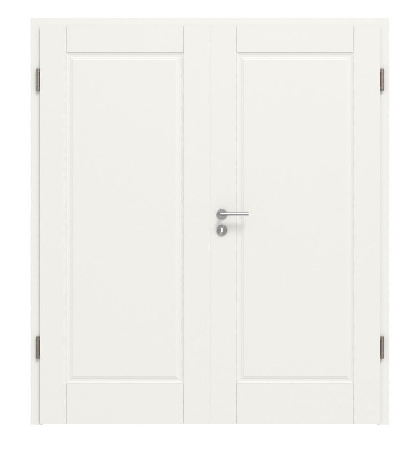 Wszechstronna podwójna wewnętrzna drzwi w klasycznym białym lakierze z profilami frezowanymi: