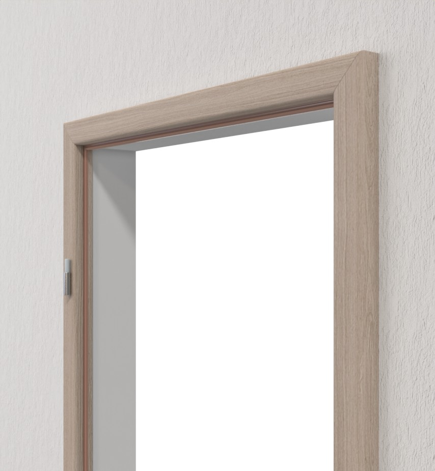 Rama ościeżnicy jest szczególnie korzystna dla wąskich przejść. Montuje się ją jednostronnie na ścianie, dzięki czemu prawie nie traci się na szerokości przejścia. Model dostarczany jest w standardzie z zamkiem, uszczelką i dwoma uchwytami na zawiasy.
