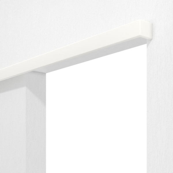 System drzwi przesuwnych z białym lakierowanym blendkastą montowaną przed ścianą: