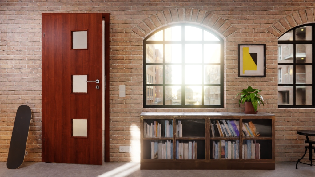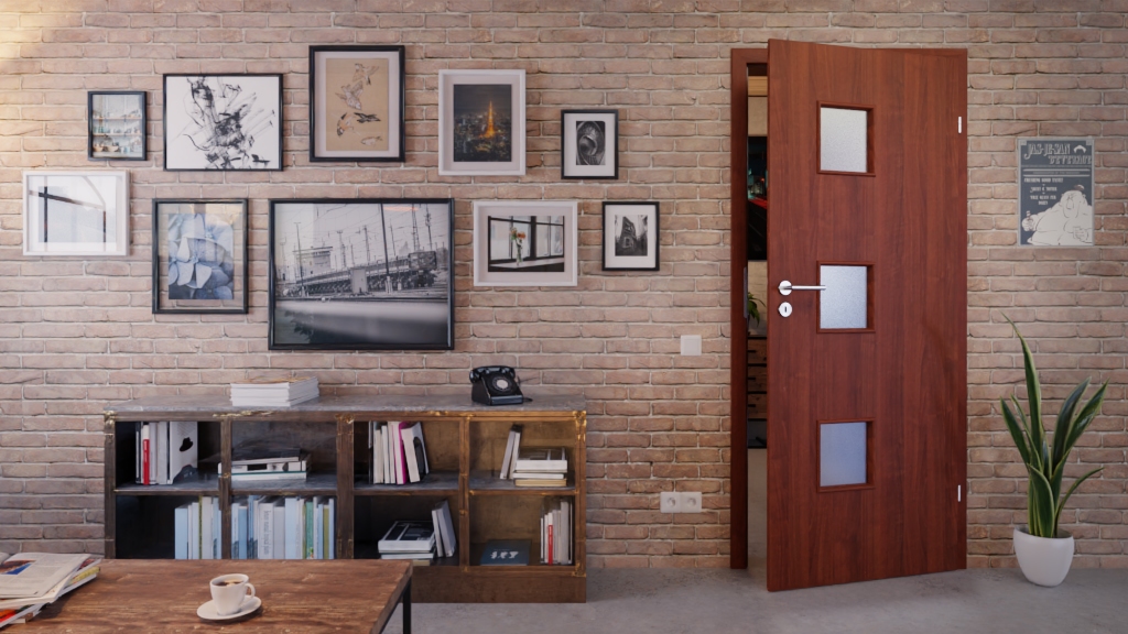 Skrzydło drzwiowe ma krawędzie proste oraz ramę MDF, która zapewnia większą stabilność. Do zestawu dołączony jest zarówno zamek wpuszczany, jak i dwuczęściowe zawiasy, które gwarantują bezpieczne mocowanie skrzydła drzwiowego w ościeżnicy.