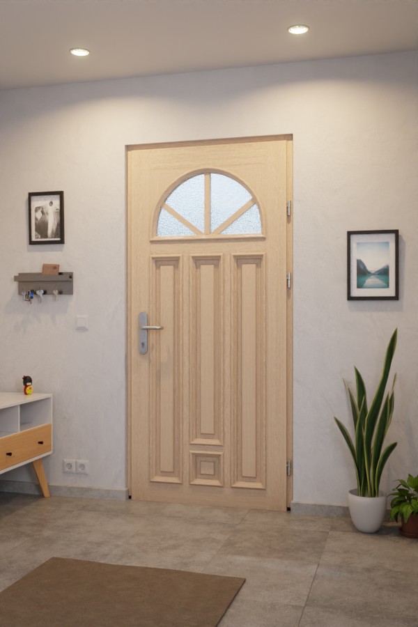 • Konstrukcja: Drzwi wejściowe z warstwowego drewna dębowego z dwoma poziomami uszczelnienia, Grubość skrzydła drzwiowego: 68 mm