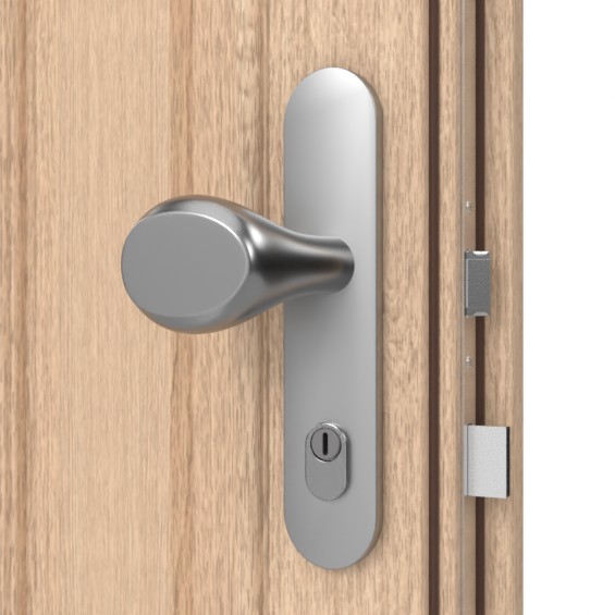 • Wersja standardowa zamka: 5-krotne zamknięcie z ryglem głównym i 4 czopami zamykającymi (odstęp kasety zamka od wkładki cylindrycznej 92 mm, kaseta zamka: 10 mm)