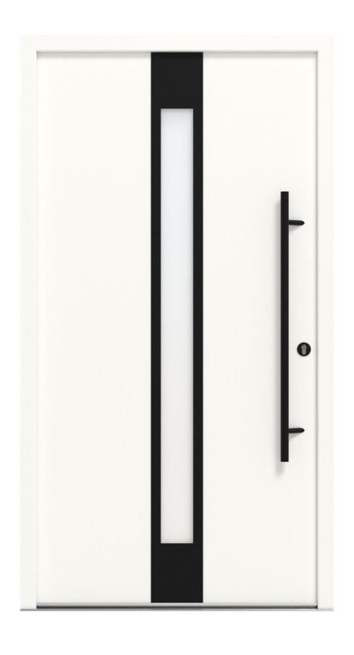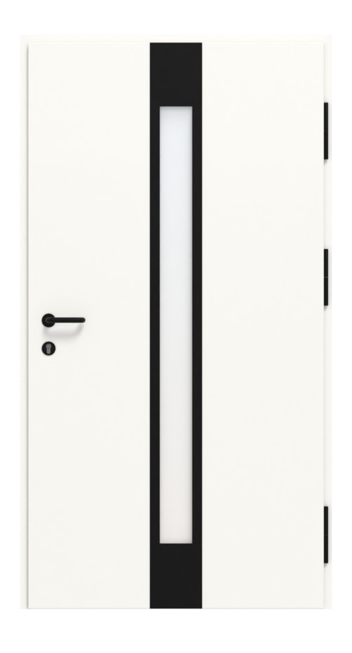 • Zakres dostawy: Drzwi wejściowe z ramą, progiem, zawiasami, zamkiem, cylindrem profilowym z 3 kluczami oraz proszkowo malowanym osprzętem ze stali nierdzewnej z uchwytem (1000 mm), wewnętrznym uchwytem i okrągłymi rozetami w kolorze czarnym (RAL 9005), dodatkowe elementy do skonfigurowania