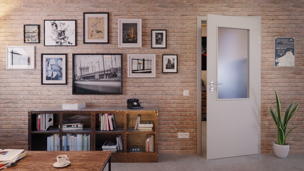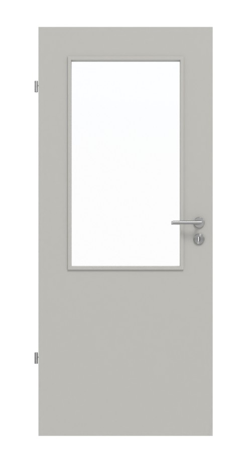 Prostokątny wkład szklany znajduje się w górnej części drzwi, co pozwala na wgląd do pomieszczenia. Dolna część jest chroniona przed stłuczeniem szkła dzięki podwyższonej pozycji otworu świetlnego.