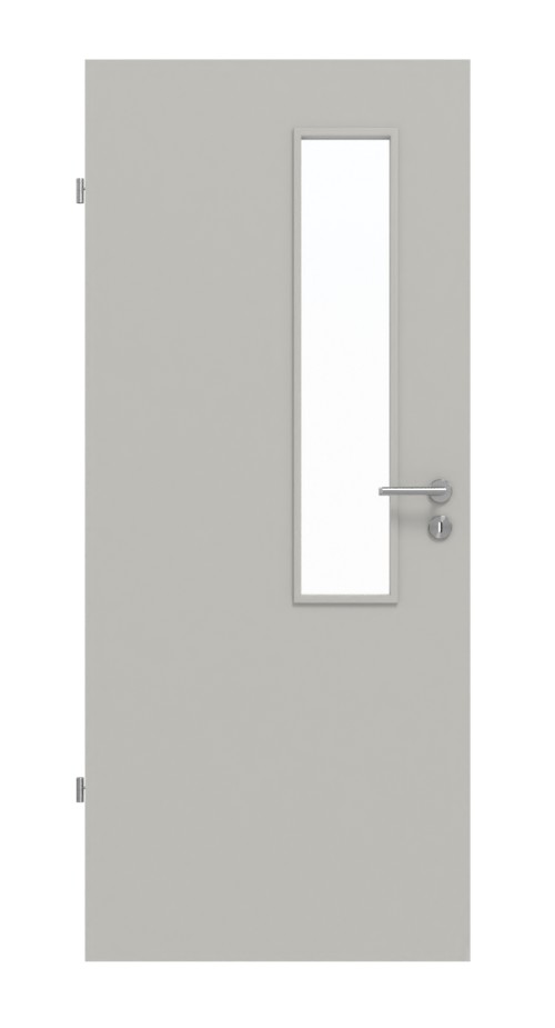 Dynamiczne i funkcjonalne wzornictwo tych drzwi w jasnoszarym kolorze gwarantuje powłoka classic-touch. Wygląda jak elegancki pergamin i jest odporna na uszkodzenia.