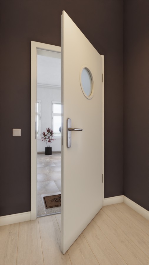 Zapewnij swojemu domowi stylową ochronę: Drzwi wejściowe do mieszkania LA Bullauge w białym lakierze firmy Westag łączą w sobie komfort z nowoczesnym designem – zapewniając doskonałe pierwsze wrażenie.