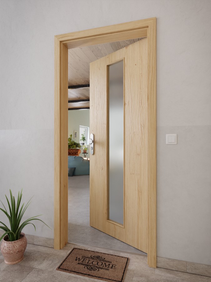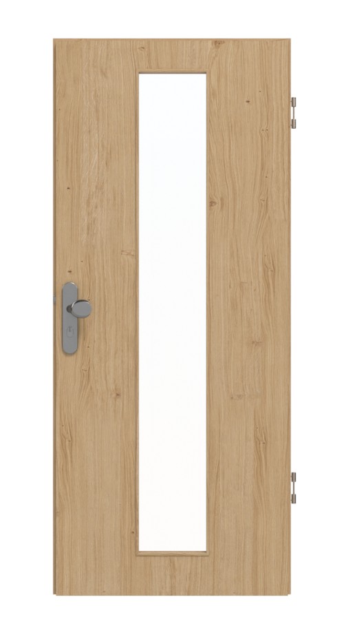 W środku skrzydło drzwiowe wyposażone jest w wysokiej jakości płytę wiórową pełną . Dzięki w cenie zawartemu oszkleniu model ten przyciąga wzrok swoją harmonijną linią.