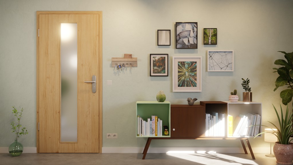 Dekor w kolorze brązowym przekonuje bogatą w detale strukturą, która realistycznie odwzorowuje sęki i słoje drzewne. Dzięki wycentrowanemu przeszkleniu naturalne światło wpada do wnętrza pomieszczenia w subtelny sposób.
