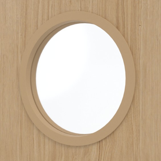 Beżowy dekor Natura Ahorn ma wzór, który realistycznie imituje sęki i słoje drzewne. Małe, zaokrąglone okienko zapewnia dostęp światłabez naruszania prywatności.