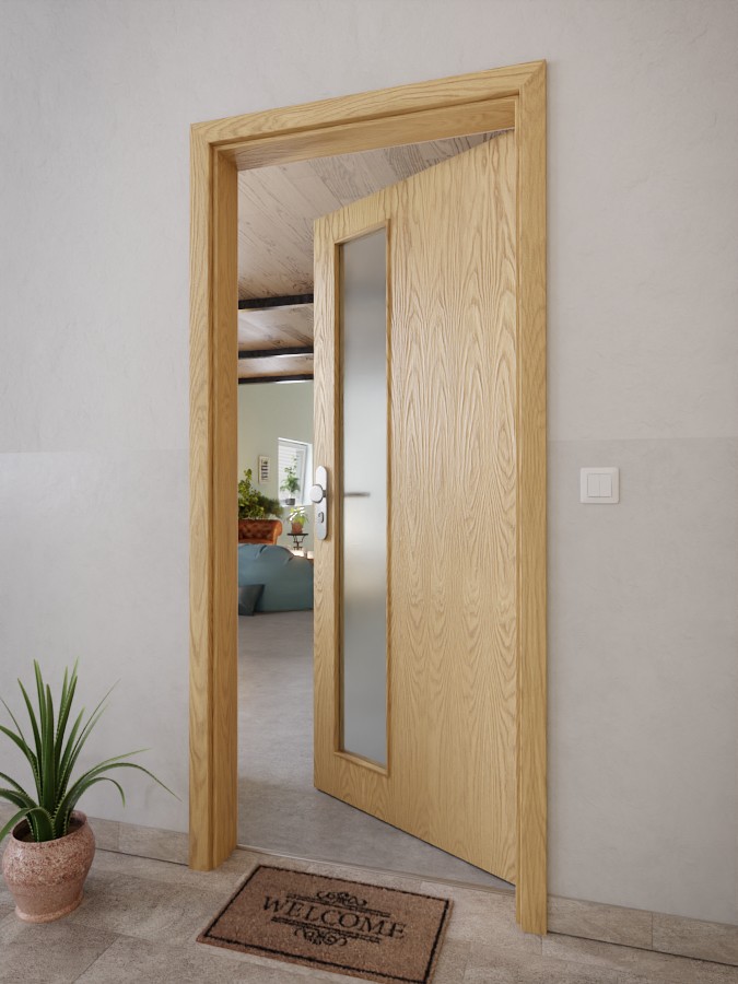 Brązowa kolorystyka wspiera naturalne i przytulne aranżacje wnętrz. Powierzchnie CPL zachowują swój piękny design nawet po długim użytkowaniu i pod wpływem światła UV. Dzięki przeszkleniu po stronie zamka pomieszczenie zyskuje przyjemne doświetlenie.