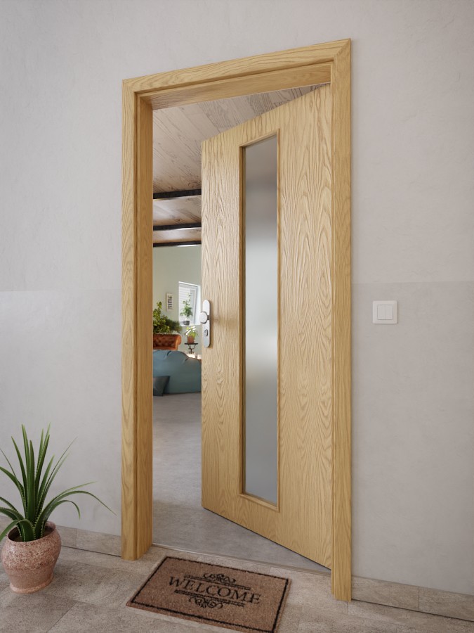 W rdzeniu skrzydła drzwiowego znajduje się wysokiej jakości płyta wiórowa pełna, zapewniająca dużą stabilność. Wliczone w cenę szklenie dopełnia model.