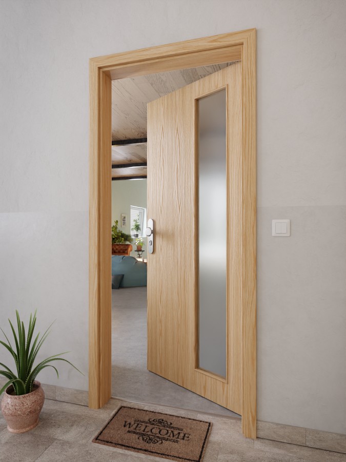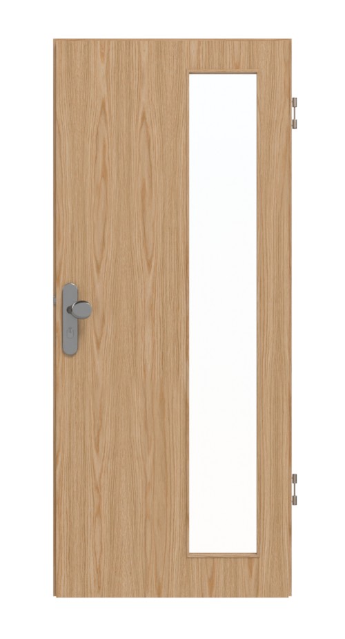 Płyta wiórowa pełna, znajdująca się w rdzeniu skrzydła drzwiowego, nadaje drzwiom wyjątkowo solidny charakter. Dzięki wliczonym w cenę szybom model ten stanowi przemyślany, kompletny zestaw.