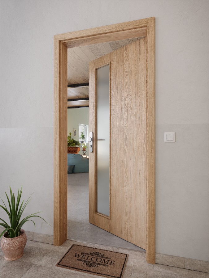 Zastosowanie wysokiej jakości płyty wiórowej pełnejjako rdzenia skrzydła drzwiowego gwarantuje wysoką stabilność. W cenę modelu wliczone jest oszklenie, które nadaje mu doskonały wygląd.