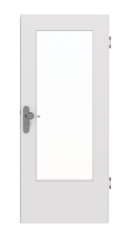 Dzięki stonowanemu odcieniowi szaro-białemu skrzydło drzwi można elastycznie łączyć z różnymi kolorami i materiałami. Powłoka CPL jest odporna, ścieralna i łatwa w pielęgnacji. Tradycyjna szyba zajmująca dużą część skrzydła drzwiowego zapewnia intensywne doświetlenie.