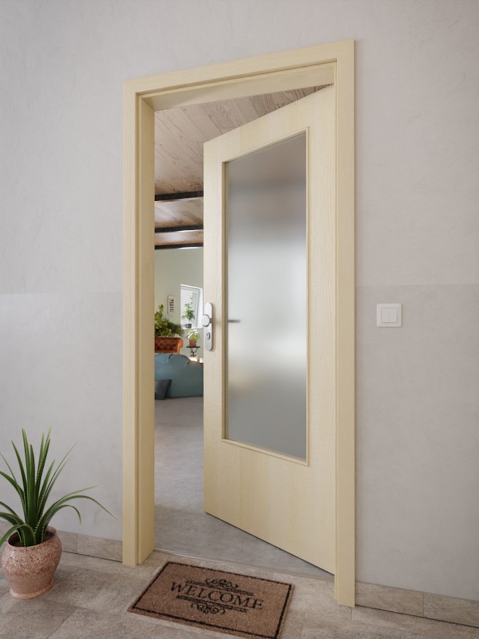 Jasnobrązowy dekor zachwyca autentycznym odwzorowaniem słojów drzewnych. Drzwi przekonują klasycznym designem i dużą powierzchnią szklaną zapewniającą optymalny dopływ światła.