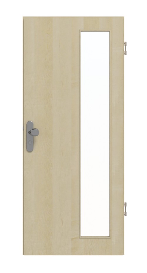 W środku skrzydło drzwiowe składa się z wysokiej jakości płyty wiórowej pełnej. Zawarte w modelu przeszklenie podkreśla stylowy wygląd całości.