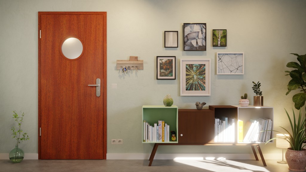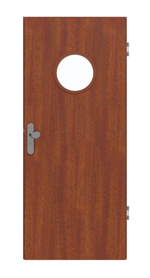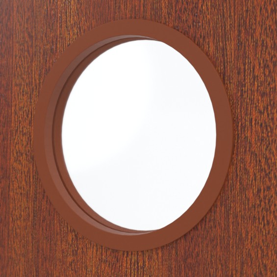 Powierzchnia z okleiną z prawdziwego drewna łączy naturalny wygląd z subtelną elegancją. Ich indywidualne usłojenie i struktura czynią każdy model unikatowym. Dzięki dyskretnemu elementowi szklanemu w kształcie bulaja do pomieszczenia wpada światło dzienne.