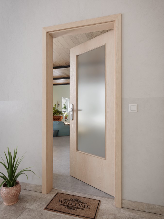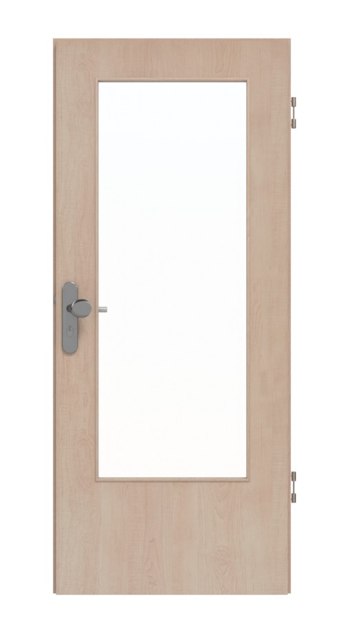 Jasna powłoka w naturalnym wzorze drewna wspiera jasną i harmonijną aranżację wnętrza. Model jest odporny na zarysowania, uderzenia i promieniowanie UV dzięki wytrzymałej i łatwej w pielęgnacji powierzchni CPL. Klasyczna powierzchnia szklana zajmuje dużą część drzwi, zapewniając dopływ światła.