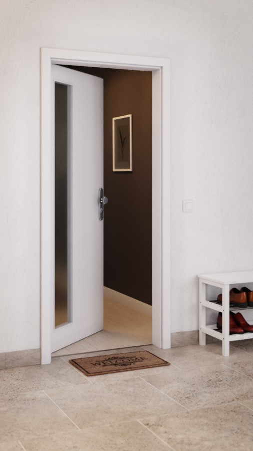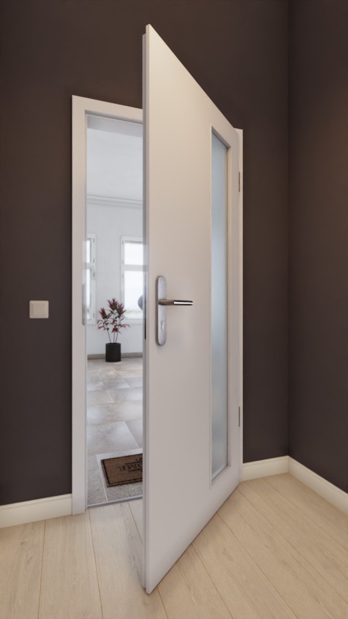 Dzięki neutralnej, szaro-białej powierzchni skrzydło drzwiowe pasuje zarówno do klasycznych, jak i nowoczesnych stylów wnętrz. Powłoka CPL charakteryzuje się odpornością na zarysowania, uderzenia i działanie światła. Boczne szklenie zapewnia delikatne rozproszenie światła.