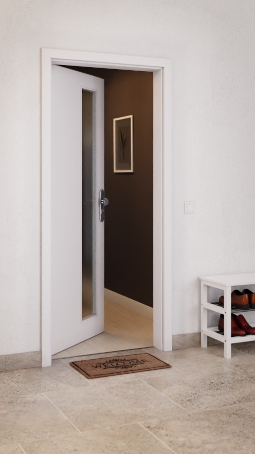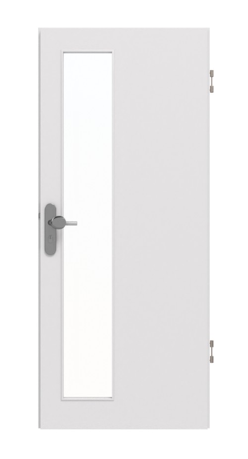 Szaro-biały wygląd umożliwia wszechstronne dopasowanie skrzydła drzwiowego do różnych aranżacji wnętrz. Piękny design powierzchni CPL jest chroniony przed zarysowaniami, uderzeniami i światłem UV. Szkło boczne zapewnia delikatne doświetlenie.