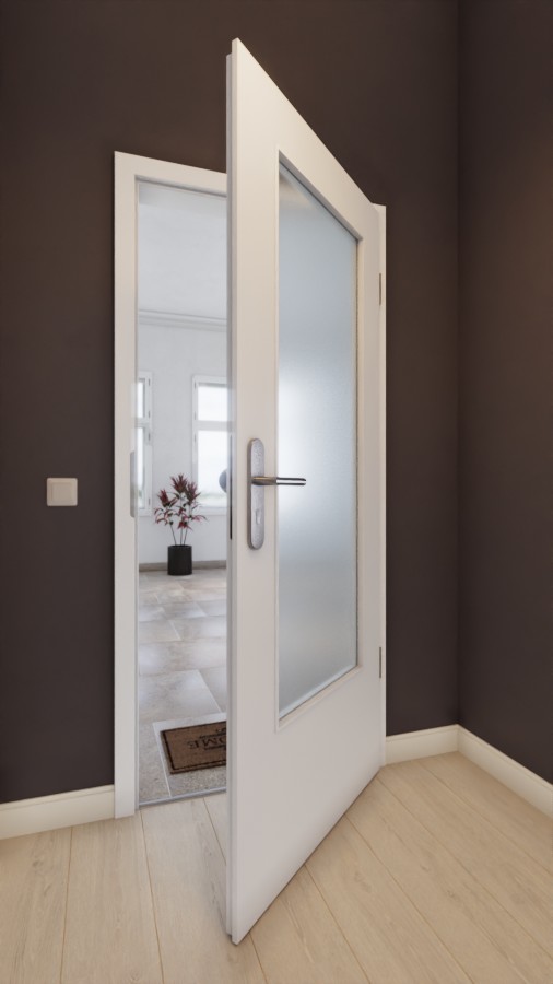 Biała powłoka symbolizuje klasyczną elegancję i można ją bez trudu wkomponować w różne koncepcje aranżacyjne. Zarysowania, uderzenia i promieniowanie UV nie mają wpływu na wytrzymałą powierzchnię CPL. Duże przeszklenia w klasycznym stylu skutecznie rozjaśniają pomieszczenia.