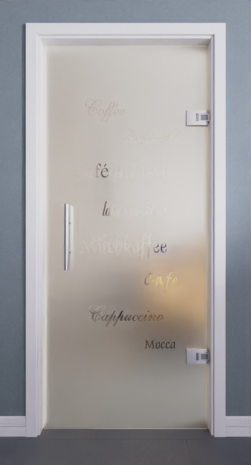Drzwi wahadłowe przekonują nowoczesnym designem. Różne specjały kawowe są wymienione przy użyciu różnych czcionek. W ten sposób Twoje pomieszczenia mieszkalne będzie przypominać modną kawiarnię.