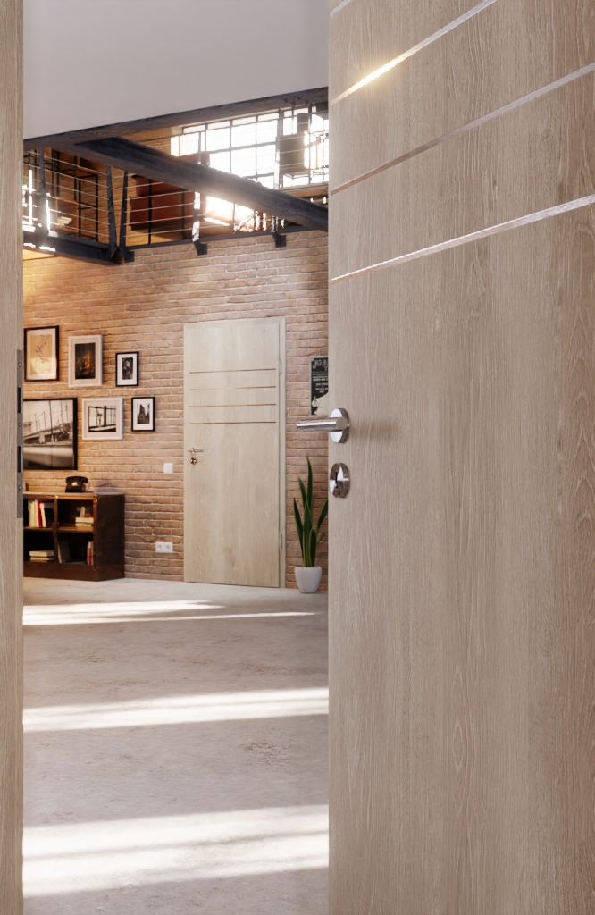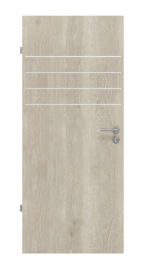Linie słojów tworzą naturalny design, który zapewnia przyjemną atmosferę w Twoim domu. W górnej części skrzydła drzwiowego znajdują się cztery lizeny, które nadają mu wyraziste wykończenie.
