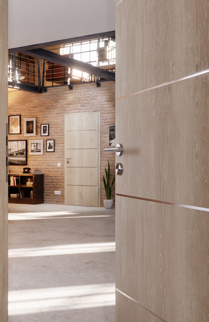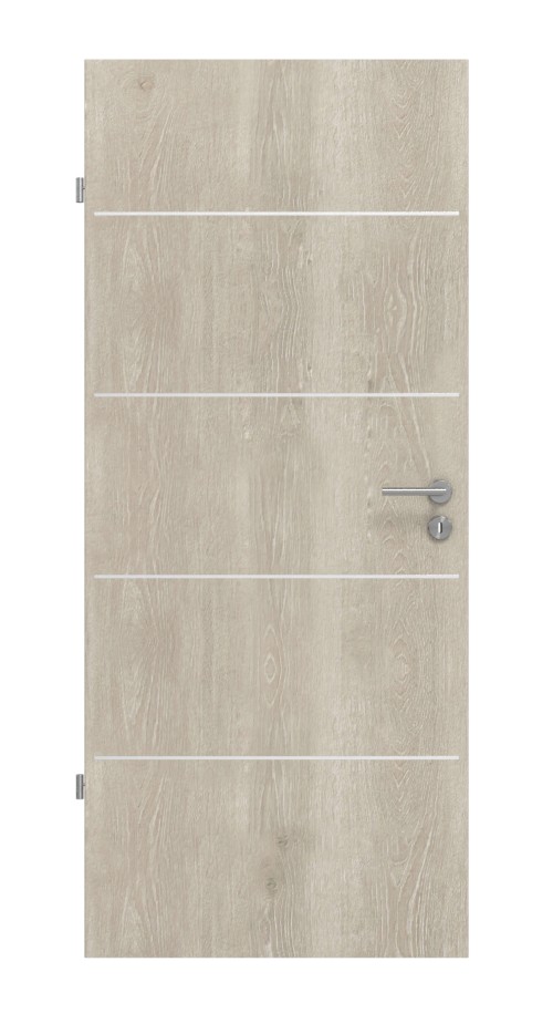 Linie słojów i wtrącenia w postaci gałęzi tworzą naturalny wzór, który gwarantuje dobre samopoczucie w Twoim domu. Wzajemne przeplatanie się ciemnych i jasnych obszarów tworzy żywą atmosferę. Dodatkowo cztery lizeny dopełniają całościowy wygląd. Biegną równomiernie w poziomie wzdłuż skrzydła drzwi.