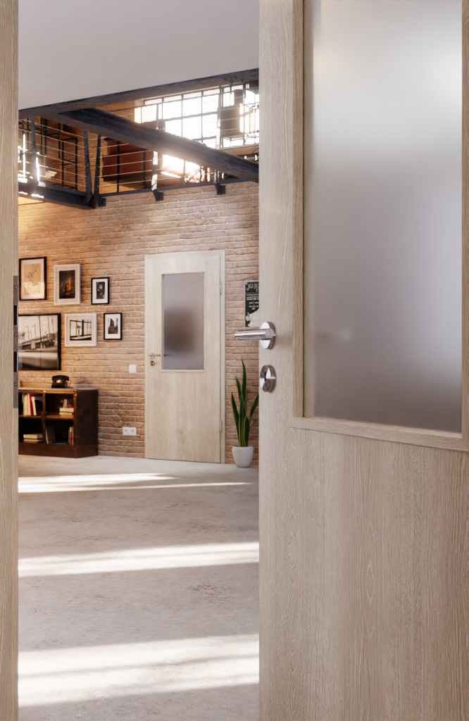 Połączenie wyglądu dębu i powierzchni szklanej sprawia, że Państwa dom staje się naturalny i otwarty jednocześnie. Możesz wybrać między szkłem przezroczystym a satynowanym.