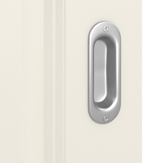 W cenie zawarty jest system montowany przed ścianą oraz skrzydło drzwiowe. W standardowym zestawie znajduje się również owalna muszla uchwytu oraz rowek prowadzący na dnie. W skrzydle drzwi stabilność i jakość zapewnia płyta wiórowa.