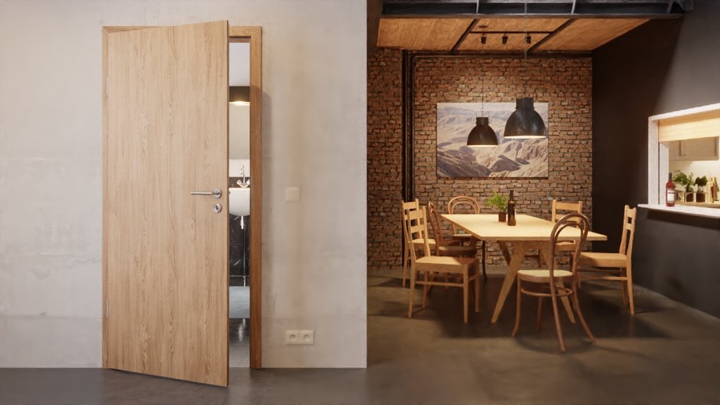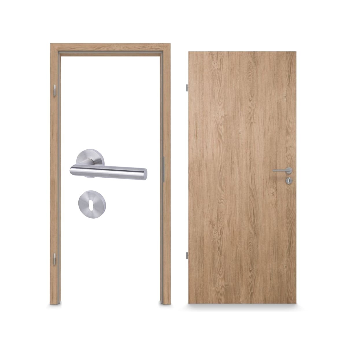 Wewnątrz skrzydła drzwiowego znajduje się stabilna płyta wiórowa. Zaokrąglone krawędzie stanowią wykończenie drzwi. W skład dostawy wchodzą również dwa 2-częściowe zawiasy, zamek wielozadaniowy oraz niezbędne elementy przeciwstawne.
