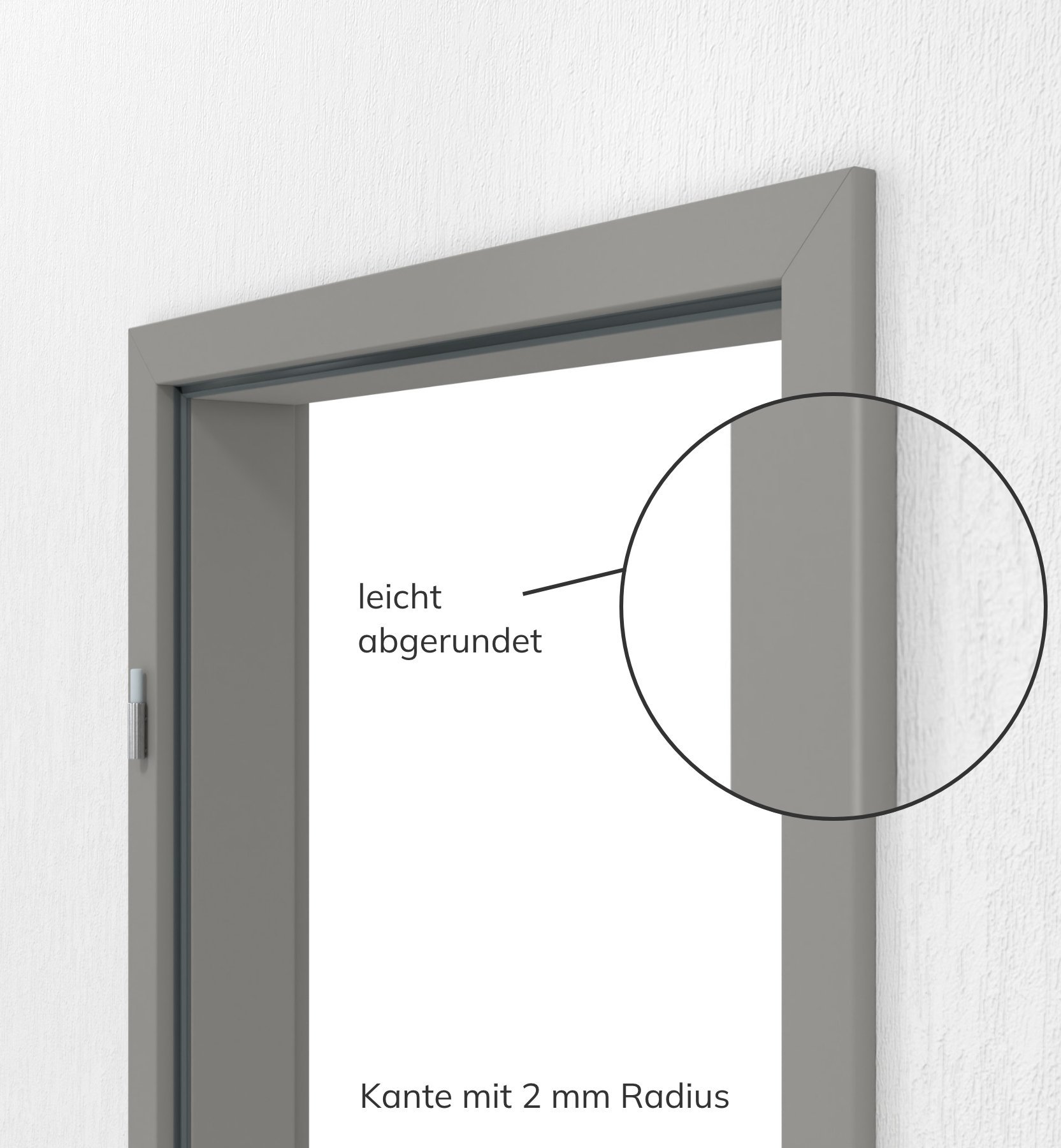 Urządzenie do zamka drzwiowego oraz wbudowana uszczelka ramy wyróżniają tę ramę. Powierzchnia CPL (CPL) w kolorze szpachli sprawia, że jest wytrzymała. Cechą szczególną jest to, że listwa wykończeniowa jest produkowana w jednym kawałku do grubości ściany 620 mm (bez szczeliny dylatacyjnej).