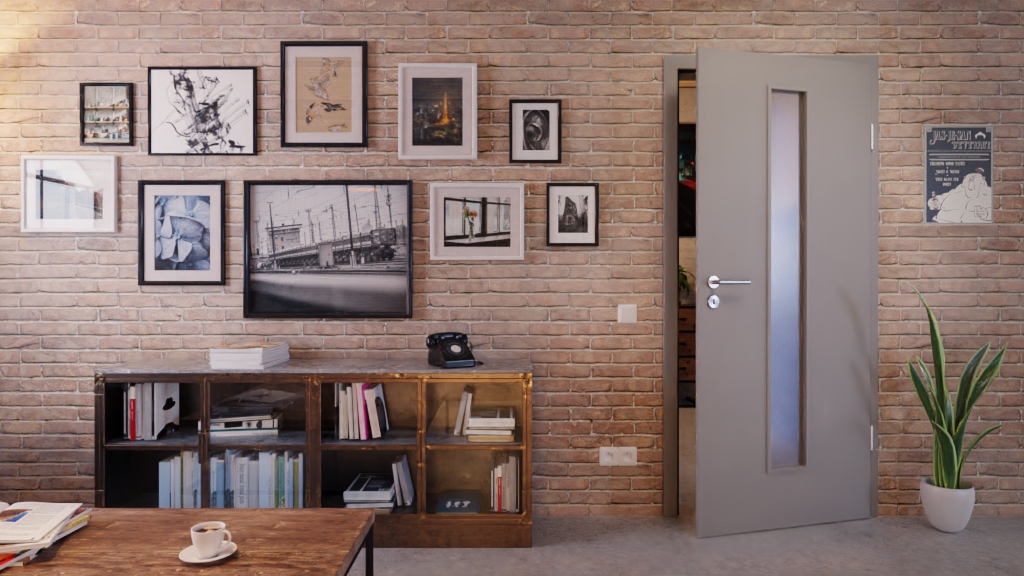 Dzięki swojej kanciastej konstrukcji i nałożonym listwom przeszklenie nadaje pomieszczeniu modny klimat. Listwy są dopasowane do koloru Kitt drzwi. Przy wyborze szkła od matowego do przezroczystego nie ma praktycznie żadnych ograniczeń dla Twoich pomysłów projektowych.