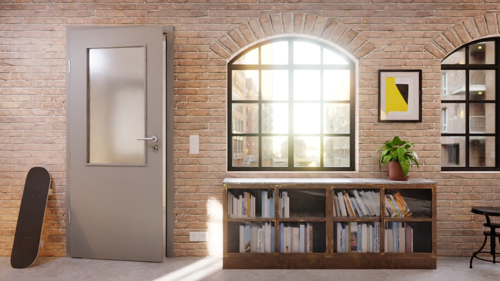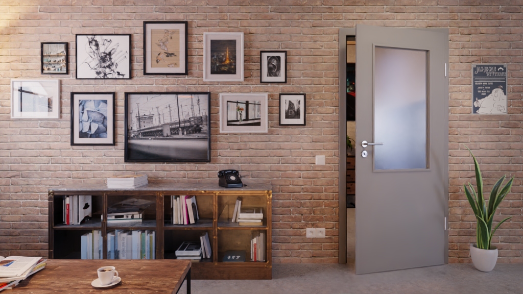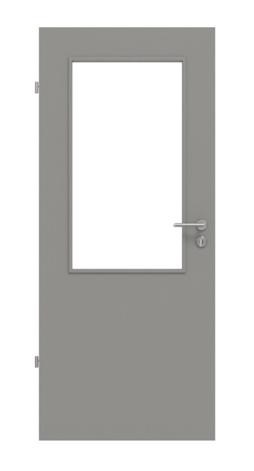 Prostokątne przeszklenie wizualnie dzieli drzwi na dwie części. Dolna część drzwi jest chroniona przed uszkodzeniami szkła dzięki wyższej pozycji, górna umożliwia wgląd do wnętrza.